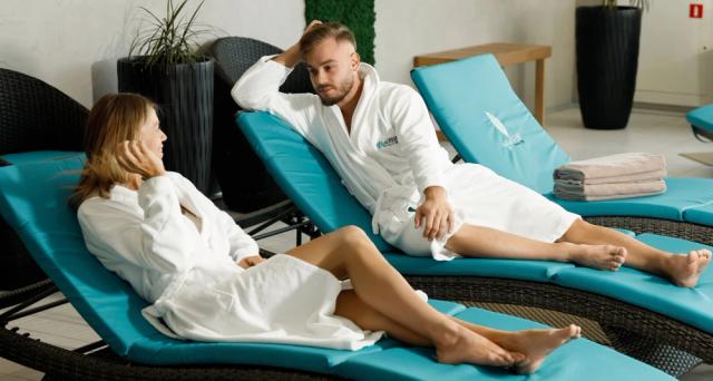 - Посещение термальной зоны: бассейна, сауны и соляной комнаты — для глубокой физической и психологической релаксации.